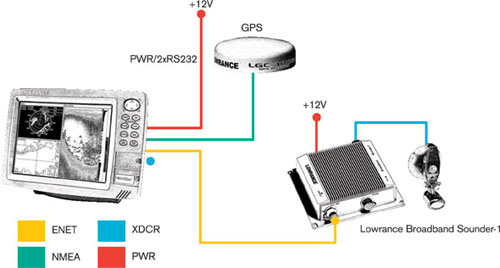- Модуль Broadband Sounder-1 підключається до будь-якого трансд'юсера Lowrance